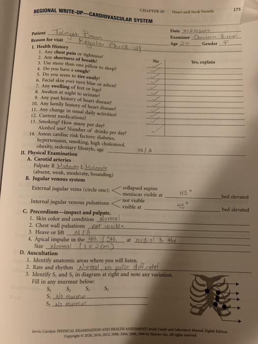 Jarvischap20 Docx Chapter 20 Heart And Neck Vessels Chapter 20 Heart And Neck Vessels Jarvis Physical Examination Health Assessment 7th Course Hero